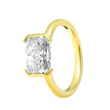Here's an example of a potential 2026 trend: an East-West set Radiant Cut ring with a bolder band.